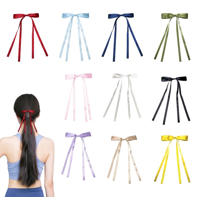 Ribbon bow hairpin Material: Polyester Color: mixed color Size: ribbon 2.5*15*25cm, hairpin about 6cm Quantity: 10 pieces (1 piece per color) Features: 1. Made of high-quality polyester material, soft, smooth, shiny, and not easily deformed. 2. The classic combination of double ribbons and bows adds a playful and cute look to your look. 10 colorful colors to suit your diverse styles. SAFETY WARNING no?Exquisite gift?It is a very thoughtful gift. Whether it is given to a girl or a woman, it can express your love and blessings to them. ?Easy Sharing?Contains 10 pieces of hair clips, sufficient quantity, you can easily share this beauty with your sisters. Wearing the same hairpin together shows tacit understanding and friendship. ?Sweet and Cute?The hairpin is exquisitely designed, with the elements of double streamers and bows integrated to add a sweet and cute atmosphere to you. There are 10 colors for you to choose from, each color exudes unique charm to meet your matching needs on different occasions. ?Product Material?Made of polyester material, soft texture, durable and not easy to deform, adding luster to your hair. ?Product Content?You will receive 10 pieces of ribbon bow hair clips, with a total of 10 colors, namely off-white, pink, blue, burgundy, purple, black, navy blue, army green, golden yellow, and champagne. 1 piece of each color, the size of the ribbon bow is 2.5*15*25cm, and the hairpin is about 6cm. It has a sweet and cute style and is suitable for daily use.