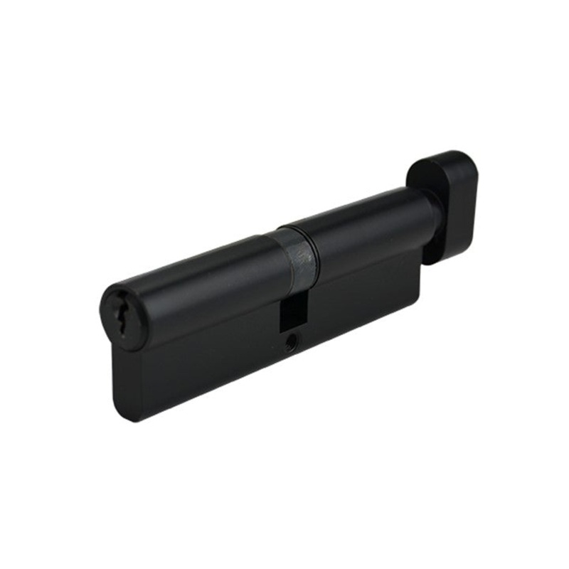 Full brass constructions and matt black finishKey alike for mutiple cylinders is available at no extra costKey locking form one side and snib locking from othersComes with 3 keys, a mounting screw included100mm length barrel ideal for thicker doors70mm eur