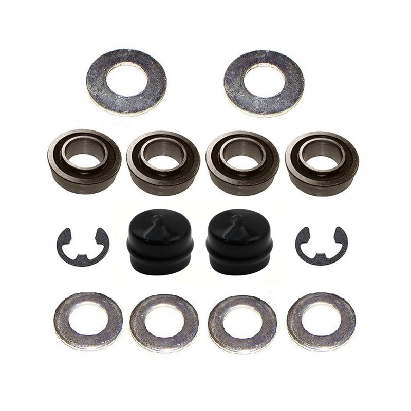-(4) Wheel Bearing OD: 1-3/8Additional Information: Kit Contains:(4) Wheel Bearing OD: 1-3/8″, ID: 3/4″, Height: 1/2″ (215-079)(2) E-Clip Diameter: 3/4″ (1185388, 916-0231)(2) Front Spindle Washer (LG) (GX21931)(4) Front Spindle Washer (SM) (Z9972H)(2) Front Spindle Cap (Black) (M128102)(4) Wheel BearingOD: 1-3/8″ID: 3/4″Width: 1″Height: 1/2″Replaces Part Numbers: 532009040, 9040H, 532009040, 532124959, 583670401, M123811(2) E-Clips3 /4Replaces Part Numbers: 1185388, 916-0231(4) Front Spindle Washer(SM)Inside Dimension: 0.812Outside Dimension: 1.500Thickness: 0.13424H TypeMaterial: SteelReplaces Part Number: Z9972H(2) Front Spindle WasherReplaces Part Number: GX21931(2) Front Spindle Cap (Black)Diameter: 1-1/16,Flange Diameter: 1-7/8,Length: Replaces Part Number: M128102