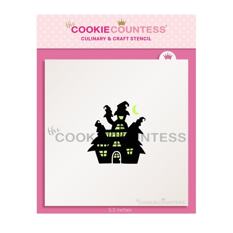 2 Piece Haunted Housestencil. Design size is 2.3″ x 2.5″ Use as a Paint your Own stencil, or as it’s own design! Overall stencil size is approximately 5.5″ x 5.5″. PINK sections in image are the open sections. Stencils are 5mil Food Grade plastic, washable and reusable.