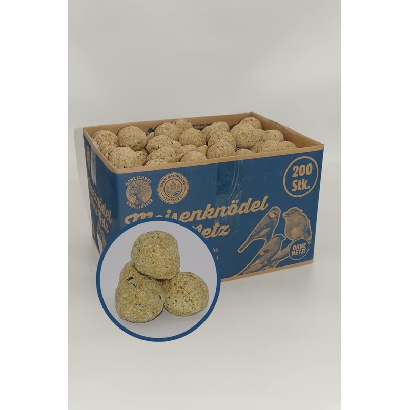 Meisen dumplings approx. 200 pieces (18kg) without a network – supplementary feed for wild birds – Meisen dumplings, approx. 90 grams each The diverse composition not only provides the birds with the necessary energy reserves, but also with important vitamins, minerals and trace elements.Subjects, greenfinds, tree runners and pastors and a few other types benefit from the teg dumplings in particular.The fat in the dumplings wears to build on feed reserves and avoids moisture into the components and spoils the feed.In winter, the vitamin and fat-rich feed forms nutritious and important support.Especially when the snow cover is closed and long -lasting frost, you can help the birds through winter feeding over the icy time.By, especially in strict winter months, there is enough feed available, they contribute to the preservation of the species of our domestic wild birds.The Meisen dumplings are of high quality and remain firmly together.There are no leftovers that could pollute your garden.Composition: cereal flakes, sunflower seeds, natural pure fats, peanuts, minerals Ingredients ingredients Cereal flakes, sunflower seeds, natural pure fats, peanuts, mineralsideal for feeding all wild bird species.Meisenkndel ca. 200 Stck (18kg) ohne Netz – Ergnzungsfutter fr freilebende Vgel – Meisenkndel, je ca. 90 Gramm Die vielfltige Zusammensetzung versorgt die Vgel nicht nur mit den ntigen Energiereserven, sondern auch mit wichtigen Vitaminen, Mineralien und Spurenelementen. Besonders Meisen aber auch Sperlinge, Grnfinken, Baumlufer und Kleiber und einige weitere Arten profitieren durch die Nhrstoffversorgung aus den Meisenkndeln. Das Fett in den Kndeln trgt dazu bei Futterreserven aufzubauen und vermeidet, dass Feuchtigkeit in die Bestandteile eindringt und das Futter verdirbt. Im Winter bildet das vitamin- und fettreiche Futter eine nahrhafte und wichtige Untersttzung. Insbesondere bei geschlossener Schneedecke und lange anhaltendem Frost knnen Sie den Vgeln durch die Winterftterung ber die eisige Zeit helfen. Indem, vor allem in strengen Wintermonaten gengend Futter zur Verfgung steht, tragen Sie zur Erhaltung des Artenreichtums unserer heimischen Wildvgel bei. Die Meisenkndel sind von hoher Qualitt und bleiben fest zusammen. Es bleiben keine Reste brig, die ihren Garten verschmutzen knnten. Zusammensetzung: Getreideflocken, Sonnenblumenkerne, naturreine Fette, Erdnsse, Mineralstoffe INHALTSSTOFFE ZUTATEN Getreideflocken, Sonnenblumenkerne, naturreine Fette, Erdnsse, MineralstoffeIdeal zur Ftterung aller Wildvogelarten.200 Meisenkndel ohne Netz