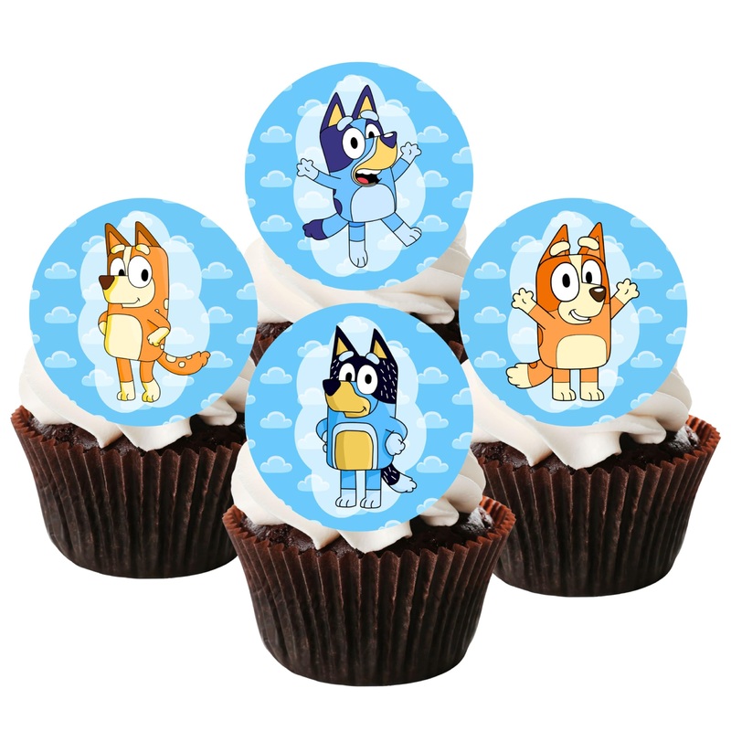 Get ready for a Bluey birthday bash with these adorable Blue Dog Cupcake Toppers! Made from edible sugar paper, these cake toppers are the perfect addition to any Blue-themed celebration. The set includes dog cupcake toppers featuring Blue y and her family, making them the ideal choice for creating a fun and festive atmosphere at your next party. These edible cake toppers are made from high-quality rice paper, ensuring that they are safe for consumption while adding a whimsical touch to your cakes or cupcakes. Whether youre hosting a puppy-themed birthday party or simply want to add some flair to your desserts, these decorations are just what you need. With their vibrant colors and detailed designs, these cupcake toppers will delight both kids and adults alike. Perfect for both large cakes and individual cupcakes, these Blue Dog Cupcake Toppers are a versatile choice for any celebration. Whether youre looking for cute puppy cake decorations or want to create a magical fairy-tale setting for your little ones birthday, these toppers will help you achieve the look you desire. Dont miss out on the opportunity to elevate your Blue y party decorations with these charming edible cake toppers! Every topper is crafted from wafer card, allowing them to stand effortlessly in both buttercream and standard icing. They can also be applied flat if desired. Wafer cupcake toppers can be used on a variety of baked goods, not just cupcakes. They can be applied to cakes, cookies, brownies, and other desserts, providing versatility in your presentation. IMPORTANT NOTICE: Despite being of high quality, please be aware that the wafer paper has a slight transparency. When applied to white icing, the colours will appear more vibrant. It’s worth noting that images printed on edible wafer paper may not be as vivid and bright as when printed on plain paper.All of our wafer card cake toppers are securely sealed in food-grade packaging and maintain a shelf life of over 12 months when stored in a cool, dry place, preferably in their original packaging. Sharp, high-resolution visuals, vibrant hues, 4cm 1.5-inch discs. They are perfect for your cupcakes, fairy cakes, muffins, cookies, brownies and other desserts. All of Cians Cupcake Toppers cupcake decorations are free from gluten, nuts, dairy, eggs, fish, and lactose. They are suitable for both vegetarians and vegans . Our dog cake toppers are crafted from high-quality wafer card edible ink, allowing them to stand effortlessly in both buttercream standard icing. They can also be applied flat if desired. Our Blue edible cupcake toppers arrive UNCUT. Simply cut around your Bluey cake decorations with a sharp pair of scissors and they are then ready to be applied to your cupcakes.
