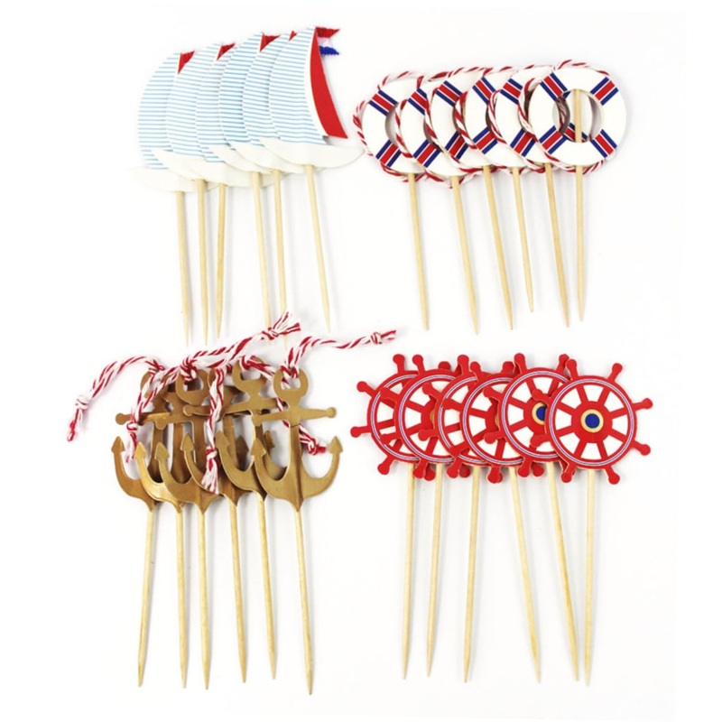 Package List 24 x topper Features - Package Size: About 12 x 10 x 0.5cm birthday nautical topper. - Color: As shown. - Material: Paper. nautical cake topper - This item is for birthday party, wedding, nautical theme party, sailor party etc nautical theme p