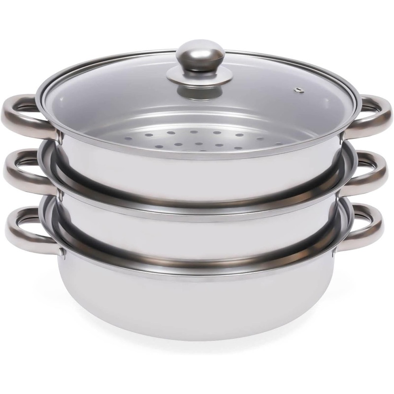 - Three-layer Design: This stainless steel steamer consists of a pan and 2 steamers, which can be freely matched to cook as you wish. As we all know, steaming is the cooking method that maintains the most nutrients and the most original flavor of food. So no matter for nutrition or health, the steamer is essential for you.