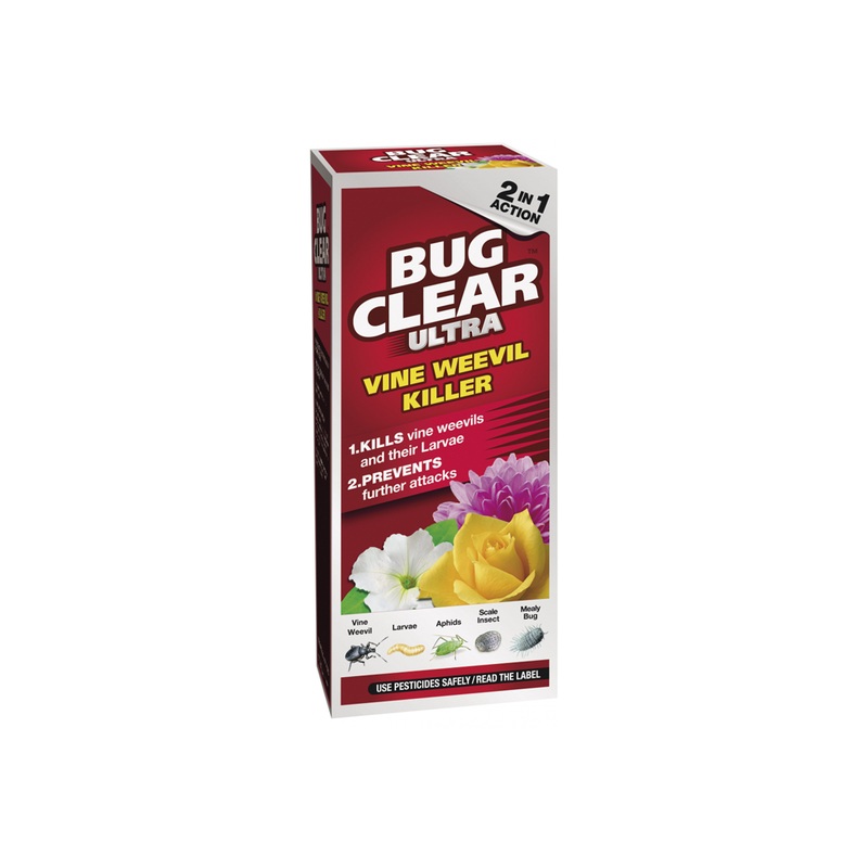 Bug Clear Ultra Vine Weevil Killer is a systemic and contact insecticide for the control of Vine Weevil and more in pots and hanging baskets.