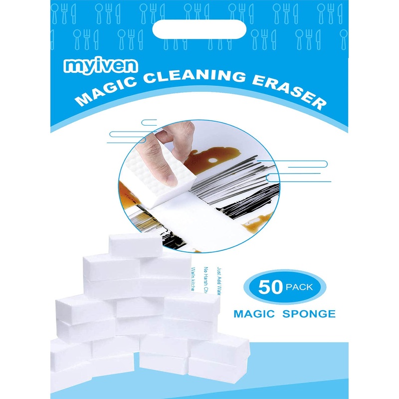 SPECIFICATIONS Color: White Material: Multi-functional Melamine Sponges Quantity: 50pcs Magic Sponge Eraser Size: (1pc)3.94x 2.76×1.18in(L W H) How to Use: Soak sponge in the water, squeeze out water slightly Scrub on stain area gently Warm water may helpful Rinse the dirty sponge with cold water after use and let it dry. Caution: Do not scrub too hard. Do not use the skin to avoid skin damage. Do not use for glossy, polished surface, such as car, PC screen, etc. Recommend to wear gloves when you use it. Keep away from children and pets. PRODUCT INFORMATION Please be reminded that due lighting effects,monitor’s brightness contrast settings etc,there could be some slight differences in the colour tone of the website’s photo and the actual item.Thanks for your understandihg. PRODUCT MANUAL MelamineImportedMade of eco materials, clean most of dust, stain without detergent. Can be cut into any sizes for a suitable shape. Good for clean sink, bathroom, refrigerator, range hood, etc. Warm water would be better. Size: (1pc) 3.94x 2.76×1.18in(L W H) Quantity:50pcs Magic Sponge EraserSize: 3.94 2.76 1.18in. Quantity: 50 pieces. Sponges can be cut freely as needed. Magic Cleaning Sponge Is An Export Product With 2x Durable And Longer Lasting time. Removes Dust, Grease And Dirt For Kitchen Appliances Including – air fryers, instant pot, blender, coffee maker, toaster, storage containers, cleaning glass, leather goods, shoes, automotive interiors, office supplies, flooring, tiles, ceramics Materials with smooth surface, can not be used: irregular surface products, resin processed products, lacquerware, plastic panels, human body, etc.Size: (1pc)100 70 30mm(L W H). No Irritating Chemicals, Environmentally Friendly Materials, nano-manufacturing processes, food-grade safety, and SGS certification. Magic sponge Is A melamine Resin Material, and the super-cleaning ability makes the surface of the object more clean and beautiful.
