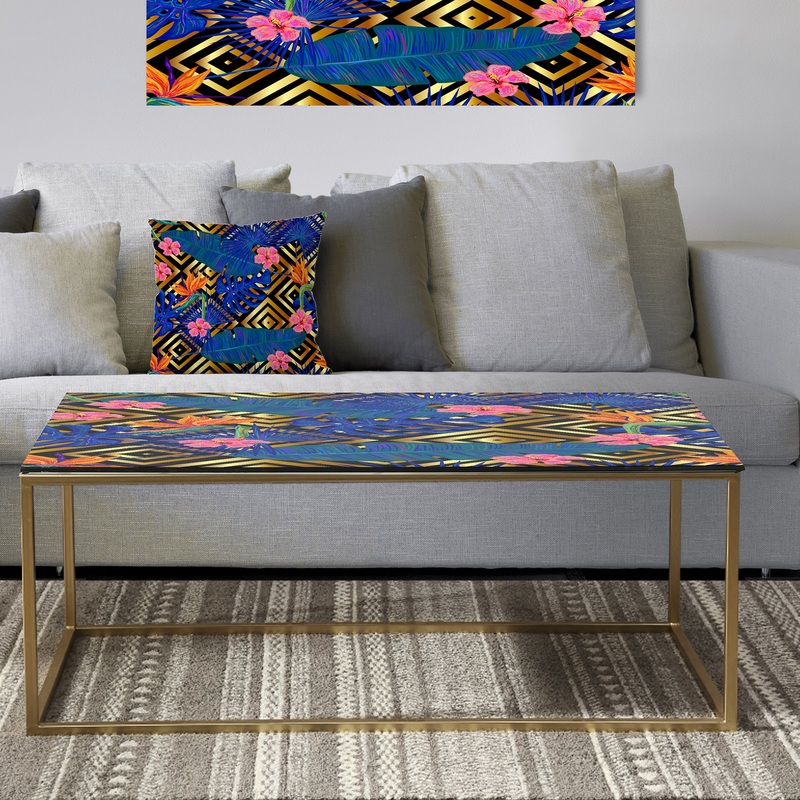 Make your living room look bright and attractive with this ‘Abstract Retro Design’ coffee table from Designart. Crafted from metal with a sled base, this accent table is strong and long-lasting. A floral pattern printed underneath the textured glass top helps prevent accidental scratches and dust, ensuring lasting design appeal.