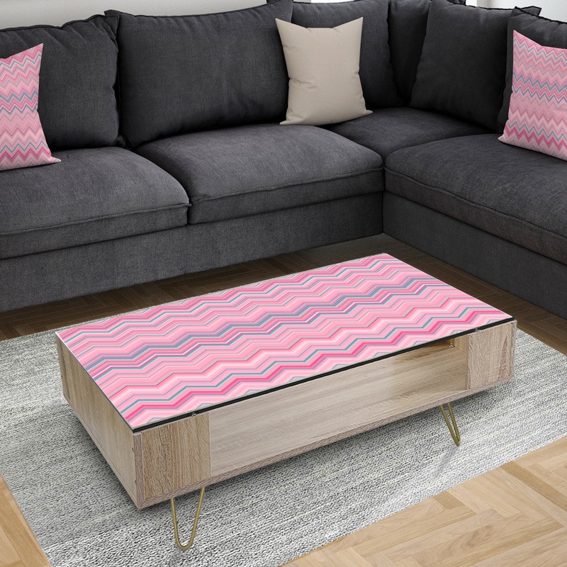 Feature mid-century decor in your living room with this ‘Abstract Retro Geometric III’ coffee table from Designart. A geometrical pattern in shades of pink printed with Italian ink underneath the glass top is fade-resistant and long-lasting. Metal hairpin legs keep the table secure while an open shelf at the bottom provides space to organize multiple items and accessories.