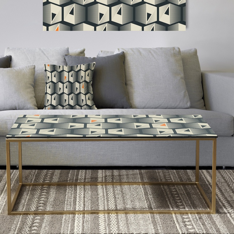 Lend artistic appeal to your entertaining area with this Abstract Retro Triangular Geometrics glam-style coffee table from Designart. High-density Italian inks give the tabletop design bold, vibrant color, and it’s printed under the glass to protect against scratches and smudges.