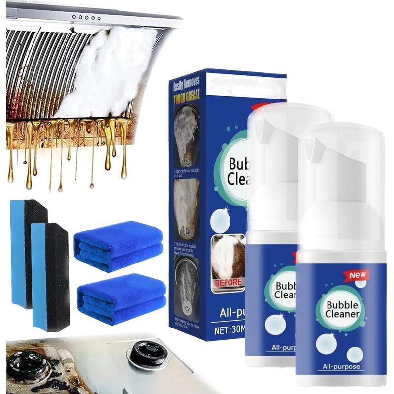 How To Use: 1. Spray the product on the surface of the object to be cleaned. 2. Wipe the surface with a towel or sponge. 3. Rinse the surface with clean water. 4. Clean the towel or sponge in time after use. Specifications: Product name: All-Purpose Rinse-Free Cleaning Spray Color: White Material: cleaner Capacity: 30ml Shelf life: 3 years Size: 9.6 3.7cm Package Includes: 1 2 3Pcs Bubble Cleaner Foam Spray 1 2 3Pcs Towel 1 2 3Pcs Sponge? Multifunctional Heavy-Duty Spray Cleaner Works on all surface including fabric, canvas, finished leather, PVC, glass, vinyl, plastic, rubber, metals, wood, gel coat, fibre glass, etc. ?Bubble Cleaner Foam Simple to use, just wash your supplies with clean water, it will be refreshed immediately, leaving a faint fresh fragrance. ? Bubble Cleaner Foam Spray Mild and effective concentrated formula can emulsify the grease and grime on contact effortlessly with dense foam, no injuries to hands or articles, safe and fast. ? All Purpose Rinse Cleaning Foam Suitable for a wide range of surfaces in the kitchen, garage, vehicles, and more, a practical cleaning tool to solve the grease messes. ? All-Purpose Rinse-Free Cleaning Spray Effectively remove grease, grime, dirt, stubborn messes and nourish the surface to keep your surface clean and fresh, no more greasy and rusty kitchen.