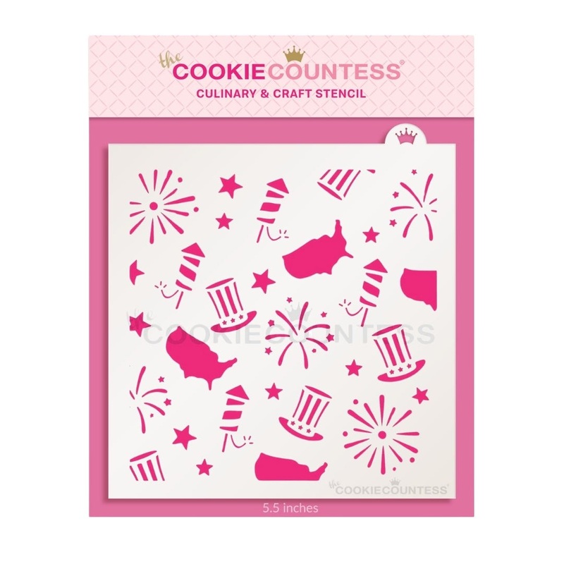 Americana PatternStencilOverall size 5.5" x 5.5".PINK sections in image are the open sections.Stencils are 5mil Food Grade plastic, washable and reusable.
