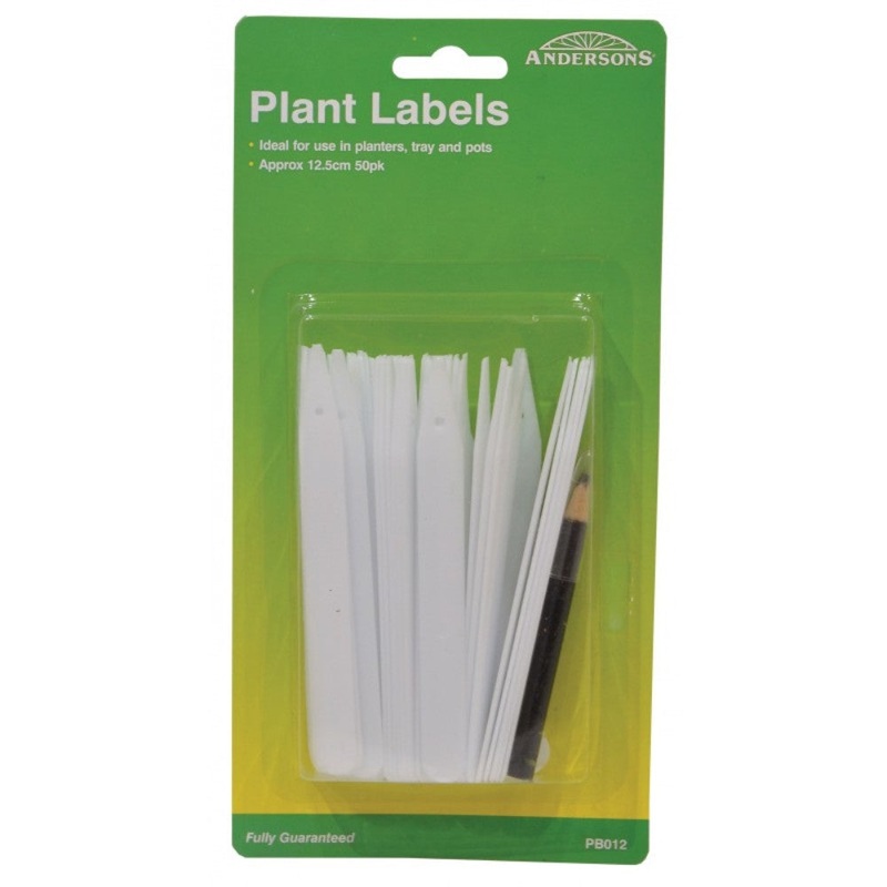 AndersonsPB012 Plant Labels & Pencil 125mm - 50pkPart No. PB012Root proof reusable plastic plant pot labelsSIZE: 125mm ApproxPack of 50Ideal for plants, trays and potPencil includedShaped to go into soil easily