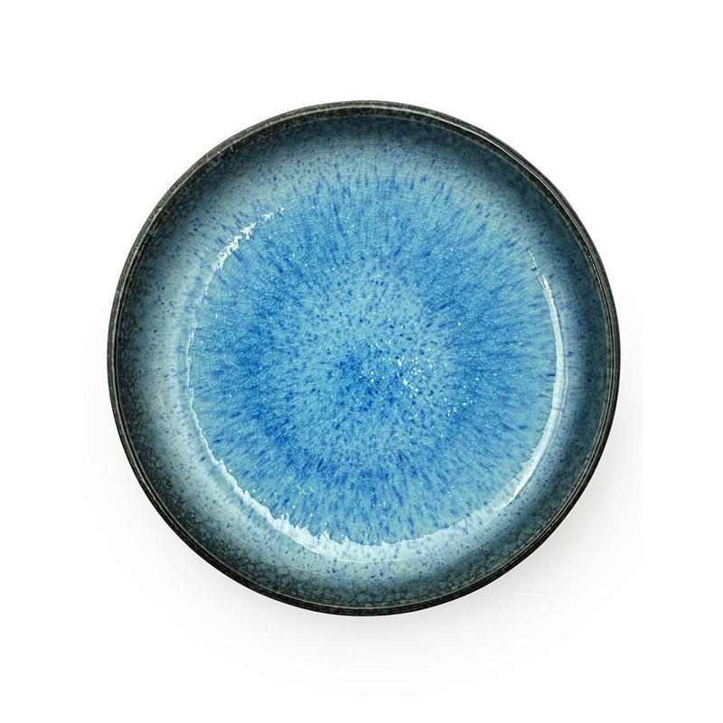 This beautifully crafted plate features a mesmerizing blue reactive glaze that creates a unique, one-of-a-kind pattern reminiscent of a tranquil ocean or a clear summer sky. The smooth glaze finish ensures easy cleaning, and the plate is microwave and dishwasher safe for your convenience.