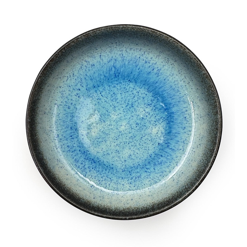 This beautifully crafted plate features a mesmerizing blue reactive glaze that creates a unique, one-of-a-kind pattern reminiscent of a tranquil ocean or a clear summer sky. The smooth glaze finish ensures easy cleaning, and the plate is microwave and dishwasher safe for your convenience.