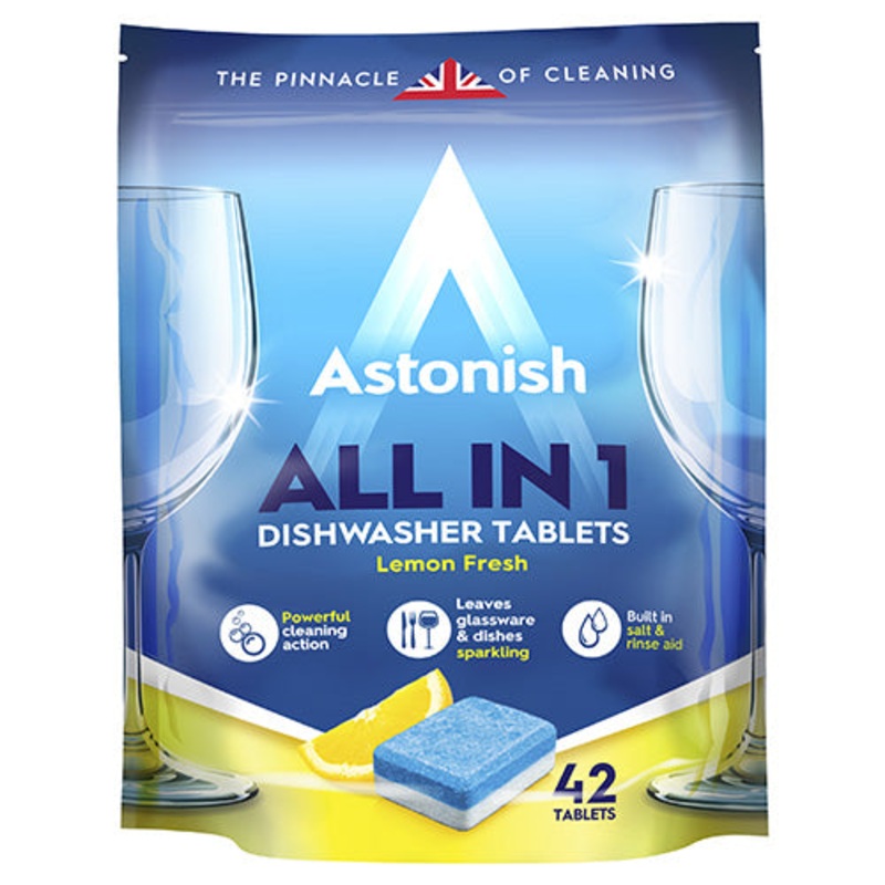 Astonish All-in-One Dishwasher Tablets (Lemon Fresh, 42 Pack) – Tackle Stains for Sparkling Dishes
