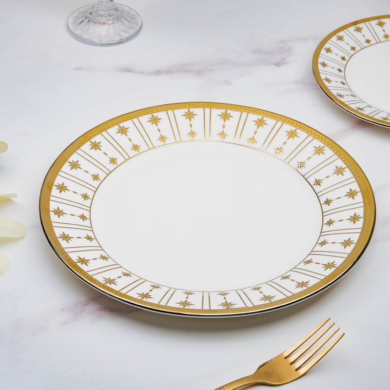 Create a luxurious dinner setting with the intricately designed dinner plate. The combination of white with lustrous gold adds to the plate’s premiumness. Serve food in perfect style when guests arrive at home or one decides on a surprise luncheon with family. Made with fine quality ceramic, the plate will suit all dining needs and create a gorgeous appeal.