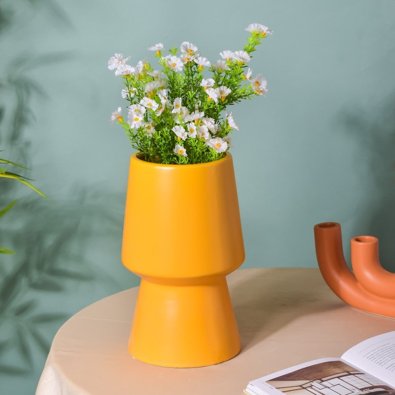 The sunny tone of the ceramic tall vase makes it a vibrant addition to any minimalist household or modern home decor. The 9-inch flower vase will surely stand out amongst other ceramic pots due to its smooth finish, matte surface and premium quality assura