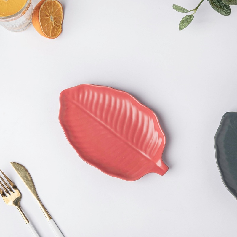 Indulge in the summery tropical vibes with the pink-coloured leafy snack plate with a semi-matte finish. The snack plate will double up as an appetizer plate. From munchies to finger foods, the leaf design plate is a spectacular choice for any meal. One can even serve fruit skewers at a pool party on this ceramic plate.