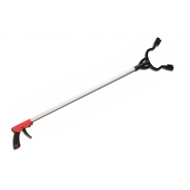 Barnel Ultra Reach aluminium Quick Pick. Ultra light weight design. Single handed operation. Super wide jaw opening. Ergonomic comfort grip and extra large activation trigger. Reversible work head with suction cups and grab bars. Width: 160mm. Length: 1020mm. Weight: 250g.