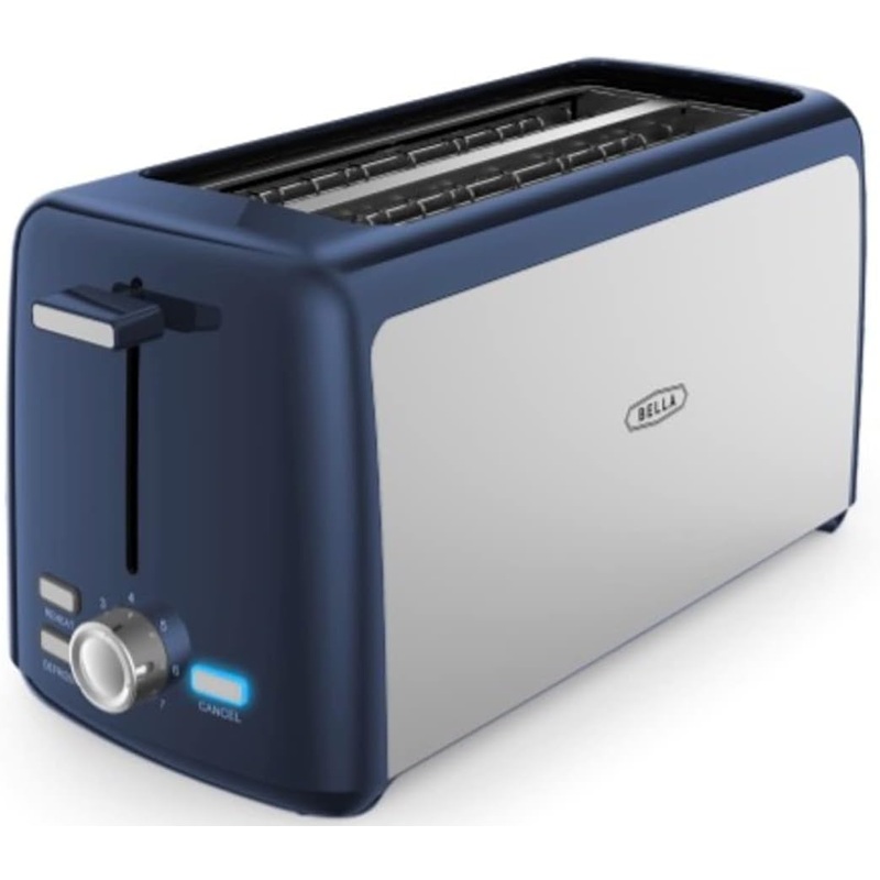 BELLA 4 Slice Toaster, Long Slot & Removable Crumb Tray, 7 Shading Options with Auto Shut Off, Cancel & Reheat Button, Toast Bread & Bagel, Stainless Steel & Blue