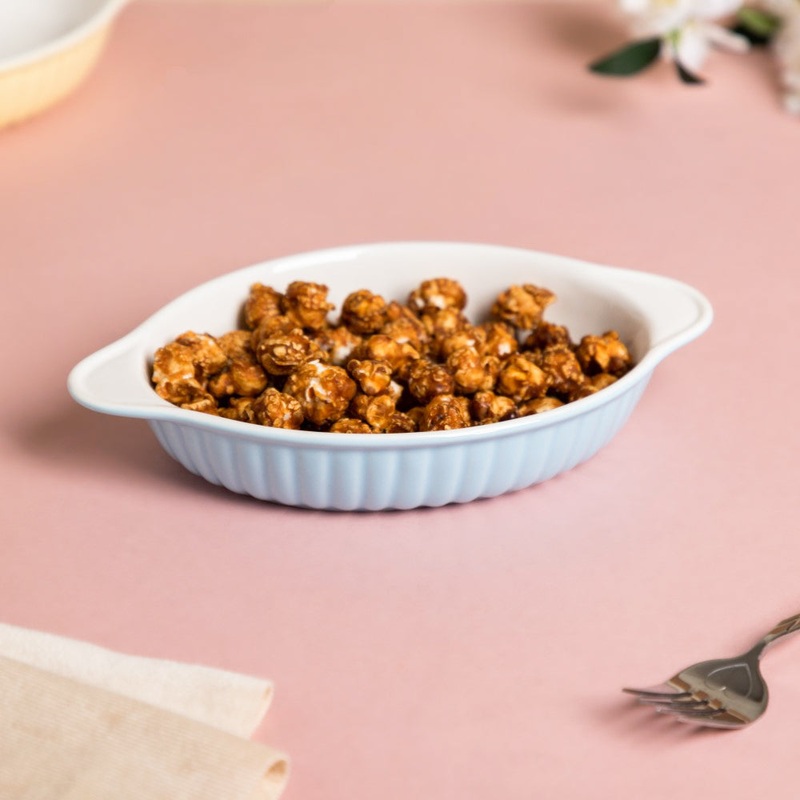 The ceramic baking tray is the perfect ceramicware for baking enthusiasts who love to experiment with cuisines. The oval-shaped tray has handles that help in carrying the tray even when the dish is hot. The design and color of the dish also make it an exquisite addition to the table and may be used as a serving dish for cookies, cakes, and kebabs.