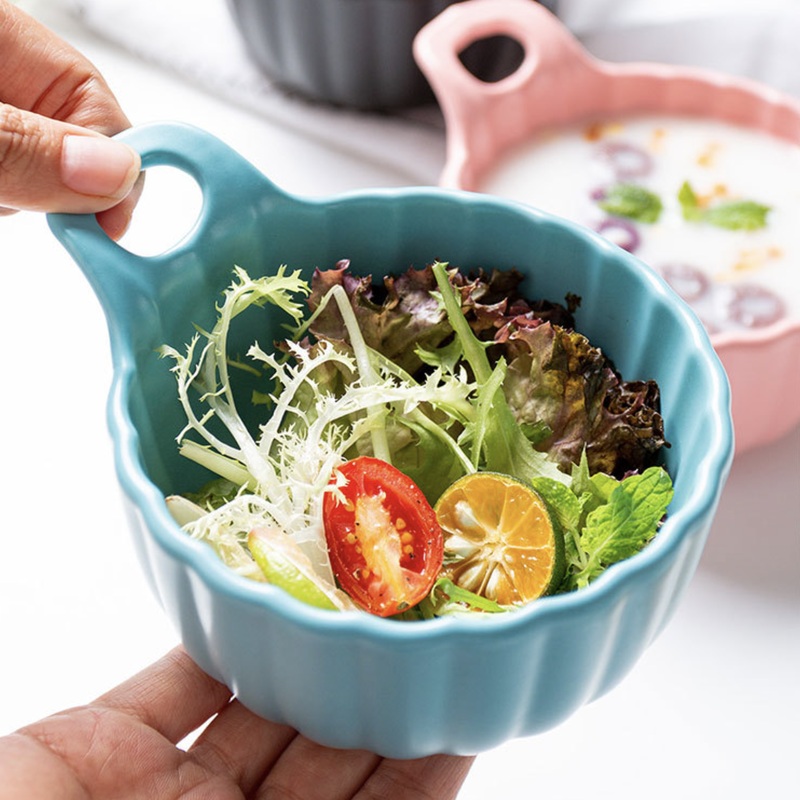 The light blue ceramic bowl with a glazed finish will stand out in any minimal table decor. The ribbed designs on the edges lend a stylish yet simple appeal to the bakeware. One can use the ceramic bowl as a breakfast bowl for serving cereals and porridge.