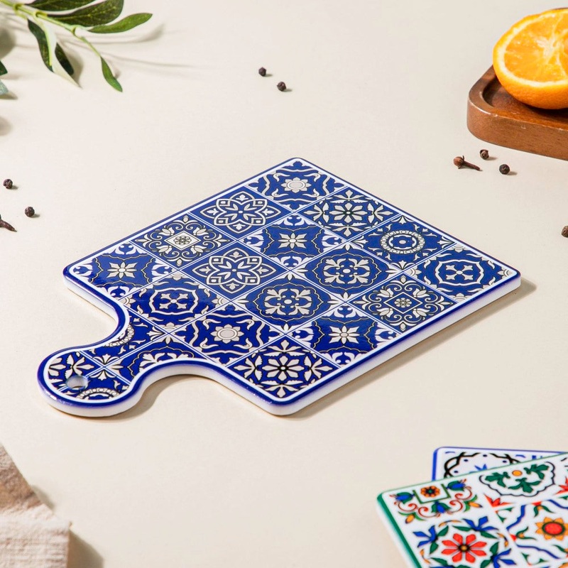 Nestip: The blue ceramic trivet can be paired with other Mediterranean patterned trivets from our collection.