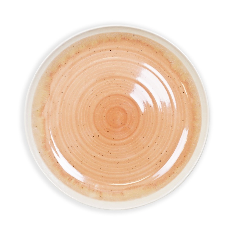 The blush pink glaze at the center transitions beautifully into a soft cream rim, creating a subtle yet striking contrast. The spiral texture and natural speckled finish add an artisanal touch, making each plate unique.SpecificationsMaterial: CeramicsDimen