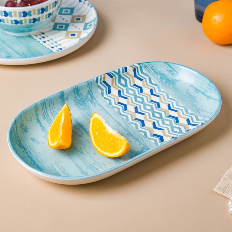 A ceramic dish with a unique pattern and form is a pleasant addition to any culinary collection. The blue ceramic plate works well as a serve-ware for snack, sides, noodles, or spaghetti, bread, and slices of cakes. The high rim of the ceramic serving plate makes them ideal for serving somewhat semi gravy-based foods as well.