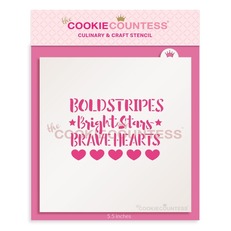 Unleash your creativity and show your patriotic spirit with our Bold Stripes Bright Stars Brave Hearts Stencil. Perfect for any America-themed cookie, this stencilreminds us that thebold stripes and bright stars of our nation will inspire and captivate your audience. Let your love for your country shine through with every use.
