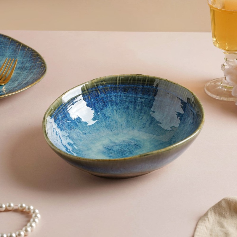 An exquisite blue colour that shines like the crystalline sapphire gemstone, the ceramic bowl, an epitome of glazed pottery, brings a blend of extravagance and rustic elements to the table. Handcrafted with expertise, the bowl exudes perfection and a beach