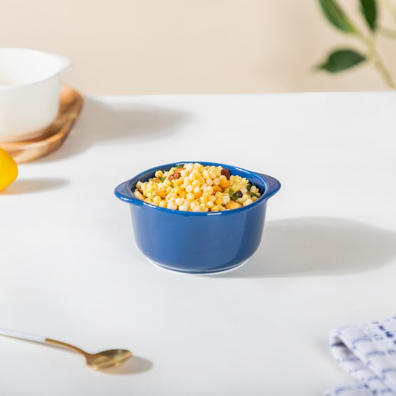 The bowl for baking is just right for being used as a baking bowl as well as serving bowl for snacks and meals. The ceramic bowl comes with a handle on each side, making them easy to pick and place. The colourful bowl can be used for grilling different food items like cakes, eggs, meat, pasta and more in the microwave. The small and large bowls can be paired together to create a bowl set.