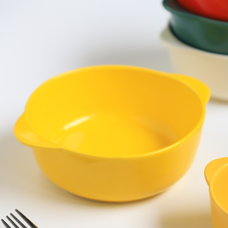 The bowl for baking is just right for being used as a baking bowl as well as a serving bowl for snacks and meals. The ceramic bowl come with a handle on each side, making them easy to pick and place. The colourful baking bowl can be used for grilling different food items like cakes, eggs, meat, pasta and more in the microwave. Small and large bowls can be paired together to create a bowl set.