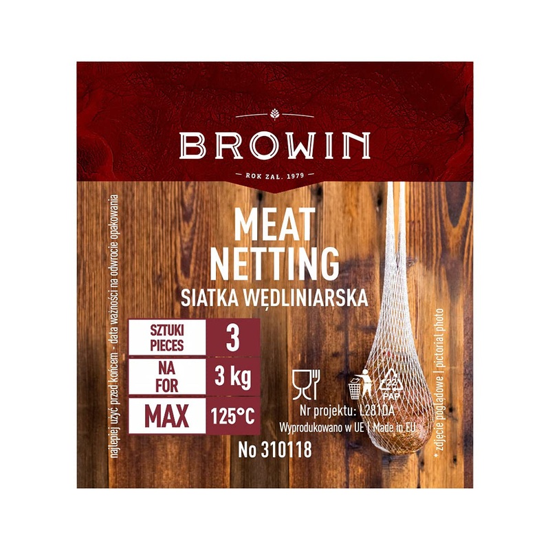 For working in the kitchen, we particularly recommend the solid, professional smoking network from Browin, which can easily be solved by homemade products.Thanks to him, your meat or cheese products achieve an exceptionally appetizing look.The high quality materials from which the smoking network is made make it very elastic to find products from a weight of up to 3 kg.The smoking network can be safely used for heat treatment at a maximum temperature of up to 125degree C.Start your culinary adventure with the smoking nets of Browin … because homemade things are better!ATTENTION: After pulling apart, the network has declared dimensions that were declared by the manufacturer.confirmed quality – the network has a certificate from the Polish state hygiene institute, the material used does not affect the taste and smell of the products.Higher resistance – does not tear and its thermal resilience is +125 C.Comfortably in the application – is not liable to the surface of the products during heat treatment.For smaller and larger portions – they will be able to place products of up to 3 kg in a simple way.The total length of the network is 62 cm.For homemade products – the Browin brand’s smoking network for smoking, brewing, tires and drying ham, pork comb and cheese in one piece. Fr das Arbeiten in der Kche empfehlen wir insbesondere das solide, professionelle Ruchernetz von Browin, das sich leicht von hausgemachten Erzeugnissen lsen lsst. Dank ihm erlangen Ihre Fleisch- oder Kseprodukte ein auergewhnlich appetitliches Aussehen. Die hochqualitativen Materialen, aus denen das Ruchernetz gefertigt ist, machen es sehr elastischin ihm finden Produkte von einem Gewicht bis 3 kg Platz. Das Ruchernetz kann bei der Wrmebehandlung bei einer maximalen Temperatur von bis zu 125Degree C sicher verwendet werden. Starten Sie Ihr kulinarisches Abenteuer mit den Ruchernetzen von Browin … weil Hausgemachtes besser ist! Achtung: das Netz hat nach dem Auseinanderziehen Abmessungen, die vom Hersteller deklariert wurden.Besttigte Qualitt – das Netz hat ein Attest des polnischen Staatlichen Hygieneinstituts, das verwendete Material beeinflusst den Geschmack und Geruch der Erzeugnisse nicht. Hhere Bestndigkeit – reit nicht und seine thermische Belastbarkeit betrgt +125C. Bequem in der Anwendung – haftet nicht an der Oberflche der Erzeugnisse whrend der Wrmebehandlung. Fr kleinere und grere Portionen – Sie werden auf einfache Weise in ihm Produkte von einem Gewicht von bis zu 3 kg platzieren knnen. Die Gesamtlnge des Netzes betrgt 62 cm. ?Fr hausgemachte Erzeugnisse – das Ruchernetz der Marke Browin fr das Ruchern, Brhen, Reifen und Trocknen von Schinken, Schweinekamm sowie Kse in einem Stck.Browin 31 310118 Ruchernetz fr 3 kg, bis 125C, 3 St, fur Ruchern, Brhen, Trocknen und Reifen von Fleisch, Cotton
