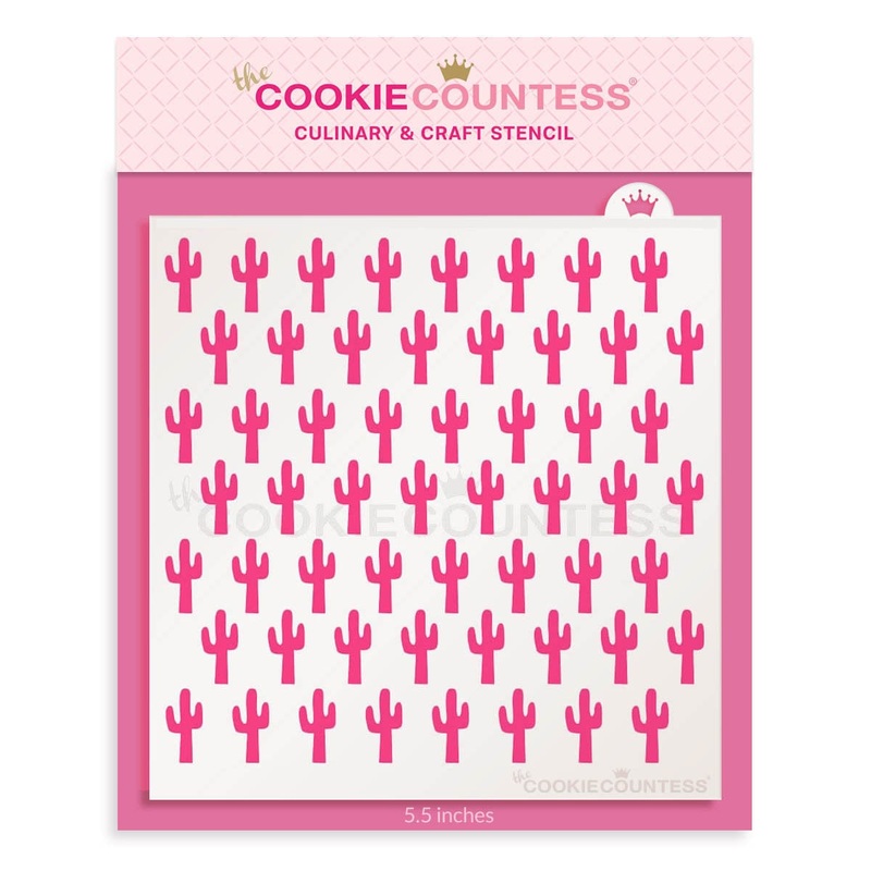 Cactus repeat stencil.Overall size approximately 5.5" x 5.5".PINK sections in image are the open sections.Stencils are 5mil Food Grade plastic, washable and reusable.