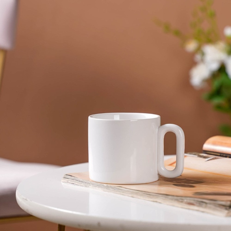 The white ceramic mug stays true to the authentic design of a coffee mug, while the elongated handle design makes it much easier to hold the mug effortlessly without spilling hot coffee. Furthermore, the compact design can help to safely tuck the mug inside a travel backpack to use it as a travel coffee mug during those tiring and hectic travel schedules. The coffee mug can also be a perfect birthday gift for friends or family members.