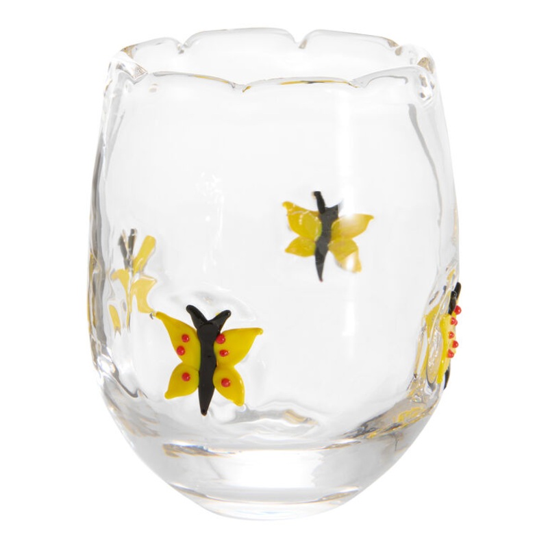 A collectible, whimsical addition to your home bar, our handcrafted Charm drinkware is a perfectly unique, World Market customer favorite. Sip your favorite white, red or ros wine varietals with our decorative, scalloped stemless wine glass, adorned with special little charms in a variety of nature-inspired designs. Each icon and arch at the rim is made by hand, creating a one-of-a-kind glass that’s perfect for entertaining or gifting to your favorite hostess.