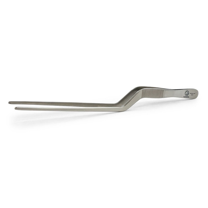 Elevate your dishes with the Chef Tongs offset plating tweezers, a true kitchen essential crafted to perfection in Japan by skilled artisans in Tsubame Sanjo. Utilizing expertise gained from years of handling culinary tools, each piece is created one at a time with minimal distortion, and with ease in gripping even delicate items. The fine-tipped tweezers are ideal for handling small cuts of meat, delicate garnishes and provide soft, precise feedback for manipulating delicate ingredients and garnishing dishes with utmost accuracy. Opt for the epitome of precision, hygiene, and lasting durability when plating delicate and temperature-sensitive ingredients, thanks to the brushed stainless steel finish that maintains a clean and professional appearance that ensures a lifetime of use. They are versatile for plating various dishes, regardless of Japanese, Western, or Chinese cuisine.