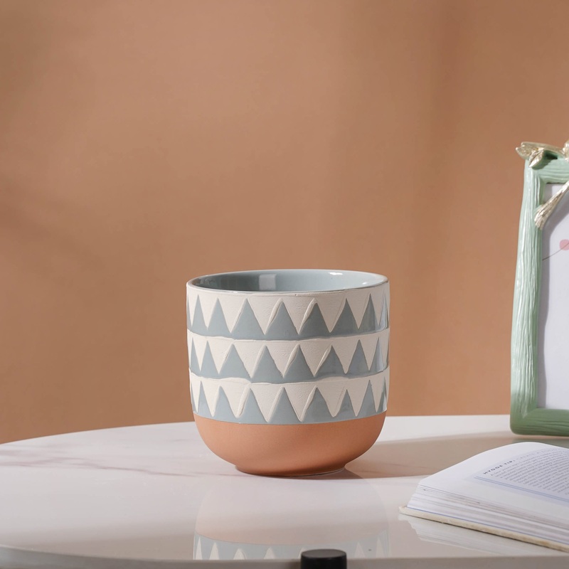 The fine blend of the white and bright blue ceramic vase is a wonderful, eye-catching centerpiece that also fits well as a home accent feature. The delightful little triangles engraved on the blue ceramic vase's body are certain to add a pleasant touch. If