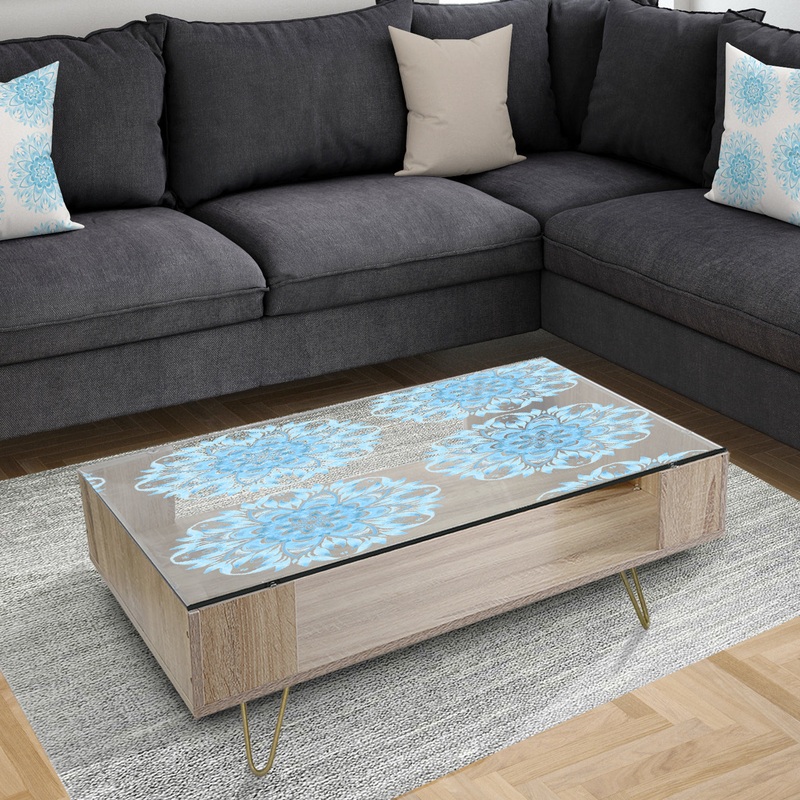 Bring a pop of color into your family room with this coffee table by Designart. Featuring large geometric shapes in bright baby blue, this coffee table provides the ideal accent piece for contemporary furnishings. The high-density Italian inks keep the print looking like new.