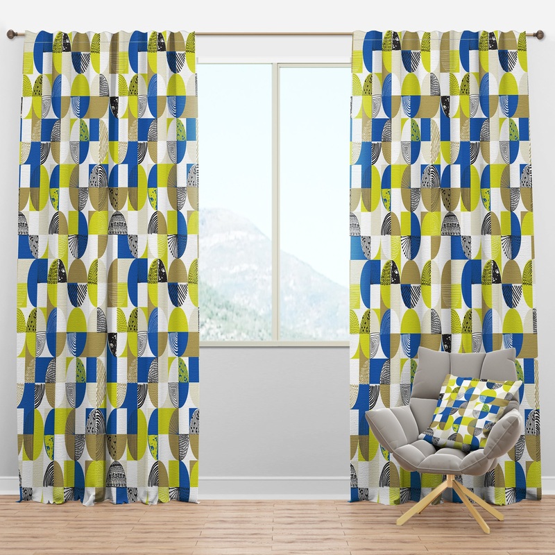 Bedeck your living space with the retro flair of these varicolored curtain panels from Designart. These panels pair well with mid-century modern decors with their groovy and vibrant accents, as the high-quality Italian inks provide an exceptionally detailed and fade-resistant display. Made with a semi-sheer faux linen fabric, these panels allow for easy care and cleaning.