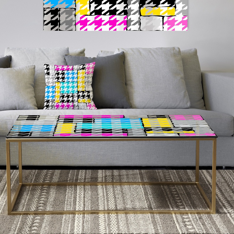 Spiff up the look of your family room with this vintage-style coffee table. This accent table provides an exceptional decorative option for contemporary homes while showcasing the clean, modern aesthetic of its open-frame design. Thanks to high-density Italian inks, the print channels a vibrant display on the glass top.