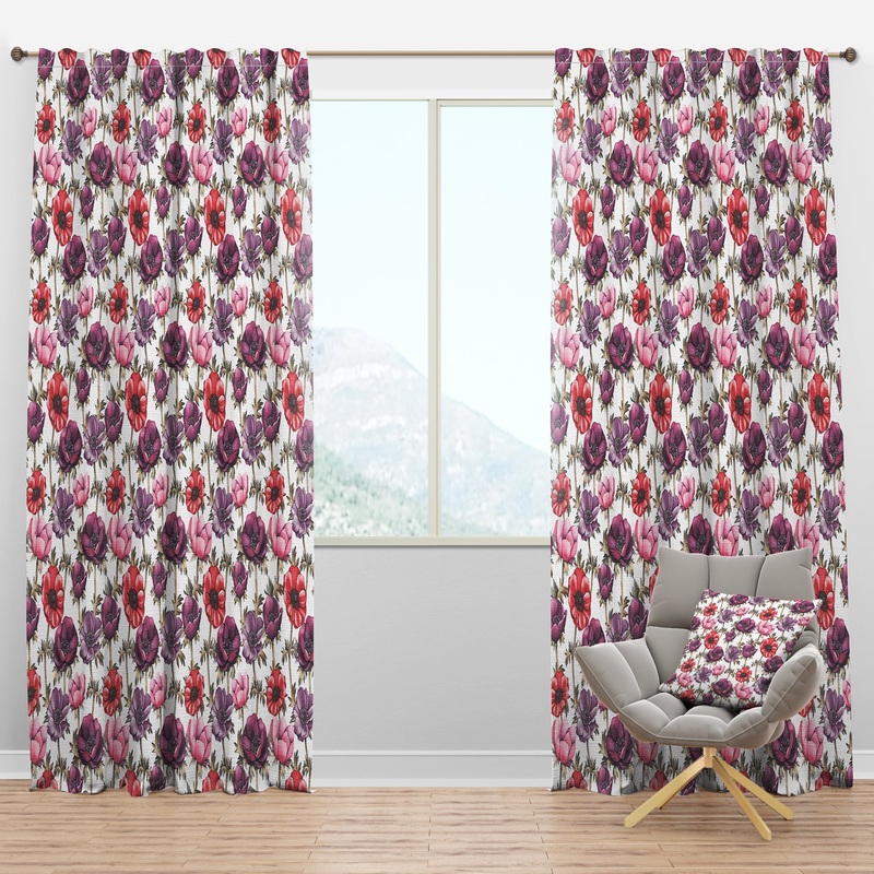Incorporate floral beauty into your home with this Designart curtain panel set. The high-quality inks mean the purple, pink, and red hues maintain a vibrant look over time, and the machine-washable fabric is easy to care for. These curtains block 50 percent of exterior light, allowing you to enjoy privacy without completely darkening your room.