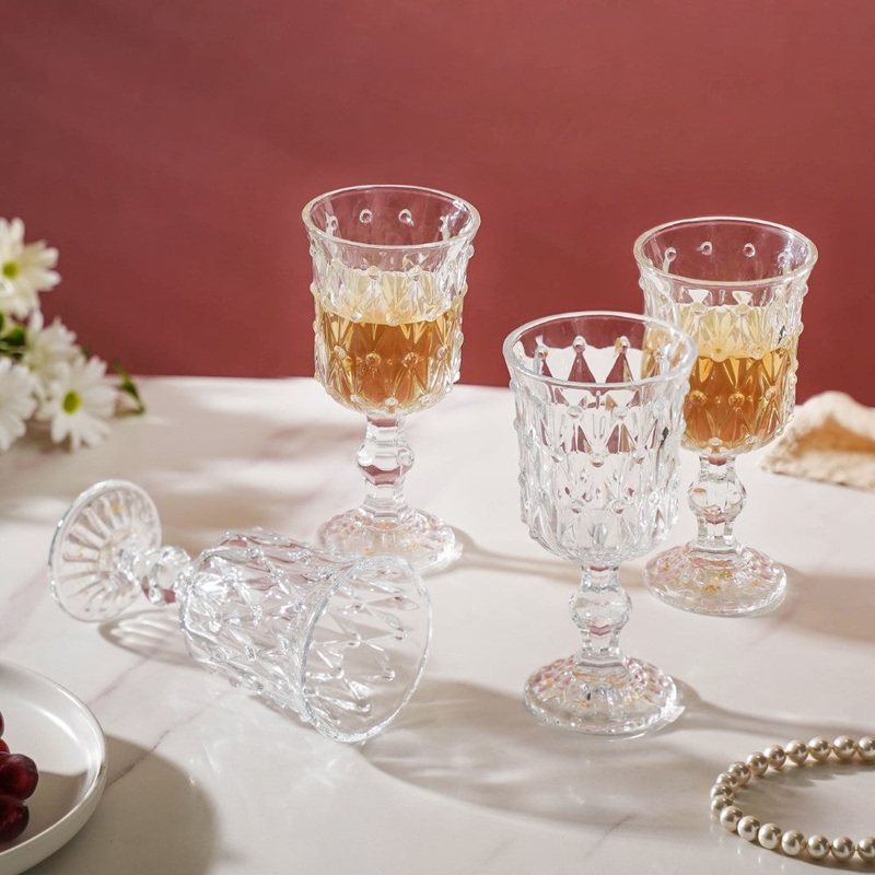 The set of 4 wine glasses looks stunning with its geometric crystal design. Crafted in premium-grade thickened glass, the glassware is suitable for serving an array of drinks. The wine glasses are ideally suited for fine dining dinner set-ups.