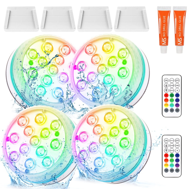 Battery drivesThese LED lights are operated with 3xAAA batteries (not included in the scope of delivery).Broad application spectrumThese LED lights are suitable for a variety of lighting scenarios and can be used indoors and outdoors.Use the lights as a decoration in Halloween pumpkin.They are also suitable for Halloween lantern decorations, swimming pools, vases, weddings, aquariums, fish pools, ponds, fountains, parties, corridors and more!.Remote controlThe LED diving lights can simply be controlled with the RF remote control up to 30 meters in the air and up to 2 meters under water.Diving lights can remotely control several lights, and they do not have to focus on the lights to controlled them remotely.With 3 timer options, the pool lighting can be switched on off for 2 hours, 4 hours and 6 hours.Waterproof IP68 LED lightsThe unique waterproof silicone ring in connection with the waterproof material cover ensures that this diving LED light has improved water resistance than other products.And each lamp has passed the IP68 water discovery test and can be bathed 100 safely in water without corrosion or water stains.16 color-changing LED lightsWith 13 integrated high-quality LEDs, Czemo sub-water lights are much brighter than others.It has 16 color light modes, 5 brightness levels and 3 color change modes (lightning, fading, smoothing).Constated magnetsThese diving LED lights are also equipped with super magnets inside that can be easily attached to the iron metal surface.You can use it as decorative room light, kitchen lamp, etc.Upgrade assembly plateimproved assembly method for these poolle lights.Each lamp is supplied with a assembly plate and a glue for assembly on the pool wall or a glass fish pool.The strong adhesive ensures that the Poolleuchte does not drop even after a long time. You can simply remove it if you want.You can install them under water without reducing the water level of the pool!.BatteriebetriebenDiese LED-Leuchten werden mit 3xAAA-Batterien betrieben (nicht im Lieferumfang enthalten). Breites AnwendungsspektrumDiese LED-Leuchten eignen sich fr eine Vielzahl von Beleuchtungsszenarien und knnen im Innen- und Auenbereich eingesetzt werden. Setzen Sie die Lichter als Dekoration in Halloween-Krbisse ein. Sie eignen sich auch fr Halloween-Laternendekorationen, Schwimmbder, Vasen, Hochzeiten, Aquarien, Fischbecken, Teiche, Springbrunnen, Partys, Flure und mehr!. FernbedienungDie LED-Tauchleuchten knnen einfach mit der RF-Fernbedienung bis zu 30 Meter in der Luft und bis zu 2 Meter unter Wasser gesteuert werden. Tauchleuchten knnen mehrere Leuchten fernsteuern, und Sie mssen nicht auf die Leuchten richten, um sie fernzusteuern. Mit 3 Timer-Optionen kann die Poolbeleuchtung fr 2 Stunden, 4 Stunden und 6 Stunden ein- ausgeschaltet werden. Wasserdichte IP68-LED-LeuchtenDer einzigartige wasserdichte Silikonring in Verbindung mit der wasserdichten Materialabdeckung sorgt dafr, dass diese tauchfhige LED-Leuchte eine verbesserte Wasserdichtigkeit als andere Produkte aufweist. Und jede Lampe hat den IP68-Wasserdichtigkeitstest bestanden und kann 100 sicher in Wasser getaucht werden, ohne dass es zu Korrosion oder Wasserflecken kommt. 16 farbwechselnde LED-LeuchtenMit 13 integrierten hochwertigen LEDs sind Czemo-Unterwasserleuchten viel heller als andere. Es verfgt ber 16 Farblichtmodi, 5 Helligkeitsstufen und 3 Farbwechselmodi (Blitz, Verblassen, Gltten). Eingebaute MagneteDiese tauchfhigen LED-Leuchten sind auerdem mit Supermagneten im Inneren ausgestattet, die einfach auf der Eisenmetalloberflche angebracht werden knnen. Sie knnen es als dekorative Raumleuchte, Kchenleuchte usw. verwenden. Upgrade-MontageplatteVerbesserte Montagemethode fr diese Poolleuchten. Jede Leuchte wird mit einer Montageplatte und einem Kleber zur Montage an der Poolwand oder einem Glasfischbecken geliefert. Der starke Kleber sorgt dafr, dass die Poolleuchte auch nach langer Zeit nicht abfllt Sie knnen es einfach abnehmen, wenn Sie mchten. Sie knnen sie unter Wasser installieren, ohne den Wasserstand des Pools zu senken!.Czemo Poolbeleuchtung Unterwasser Licht Pool 4 Stck Magnetisch LED Poollicht mit Fernbedienung IP68 LED Wasserdicht fr Pool Teich Aquarium Beleuchtung