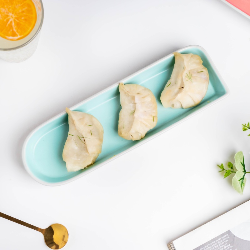 Nestip: Pair the long plate with a teardrop dip bowl and serve momos and chutney to the guests at a house party.