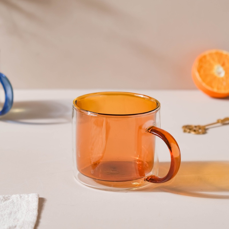 This ultra-modern glass mug is a must-have addition to the glassware collection. The cup is constructed of high quality glass which is double-walled and has a sturdy handle, with a vibrant translucent brown hue. On a rainy evening, sipping coffee or tea or savouring hot chocolate in the mug is a great way to pass the time.