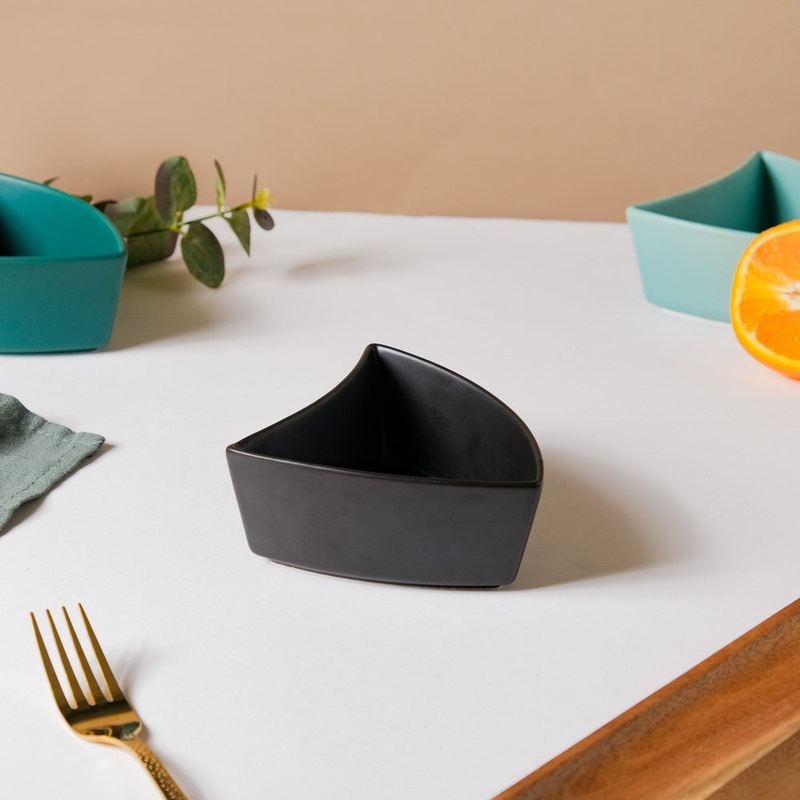 The ceramic black dish has a wonderful glossy finish and is excellent for nibbling on fruits or chips. The porcelain deep dish has a curved triangular form and may be used to serve cashews, nuts, badam, almonds, raisins, and other snacks. The ceramic bowl may also be used to serve fresh fruit, making it appropriate for use as a fruit bowl. The snack dish may also be used as a cereal or breakfast bowl.