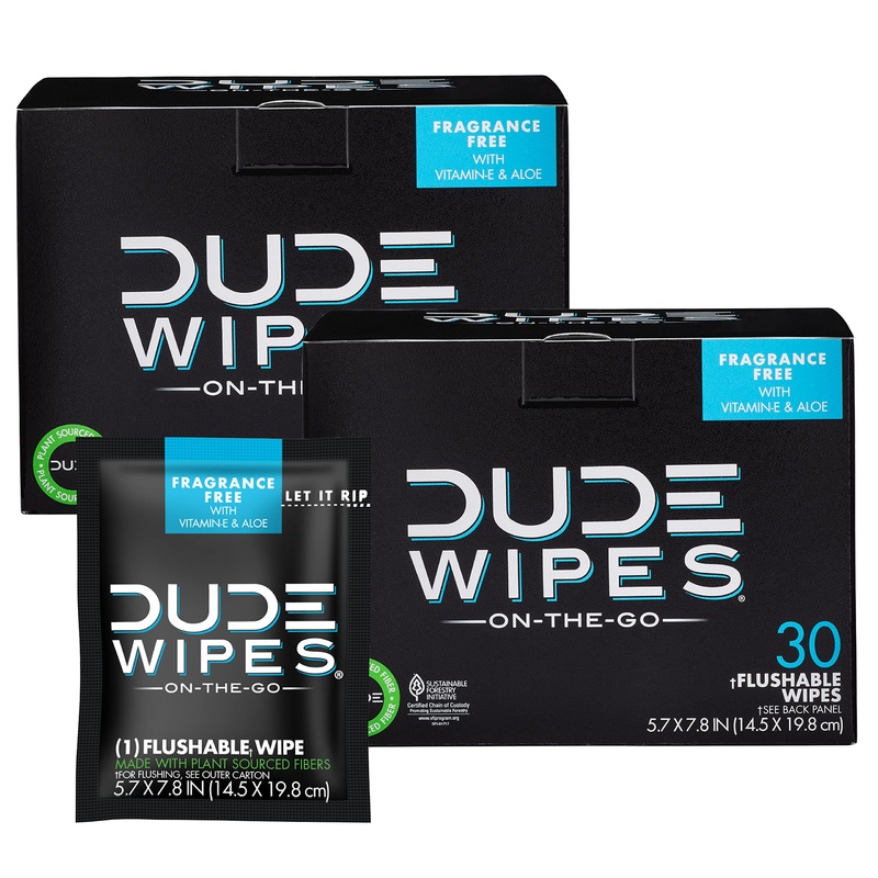 Be the first to review “DUDE Wipes On-The-Go Flushable Wet Wipes – 2 Pack, 60 Wipes – Unscented Extra-Large Individually Wrapped Wipes with Vitamin E & Aloe – Septic and Sewer Safe Fragrance Free 30 Count (Pack of 2)”