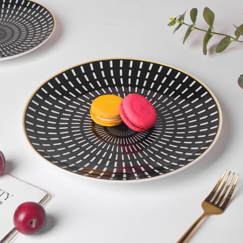 The food served on the ceramic dinner plate has a distinctive appeal due to the contrast between the monochromatic vertical stripes on the surface of the ceramic plate. Any meals with contrasting colours, like creamy cheese pasta or sauted vegetables will look stunning when presented on the plate. Lunch, dinner, or any other main course meal can be served on the ceramic round dinner plate.